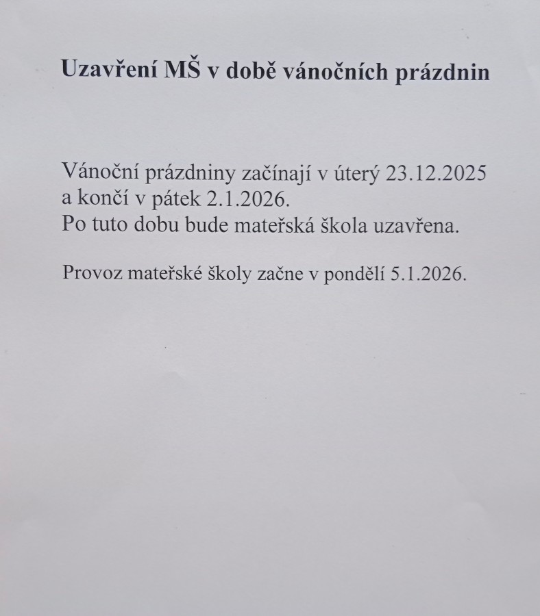 Uzavření MŠ v době vánočních prázdnin