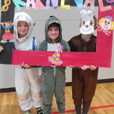 Ve školní družině se uskutečnil tradiční karneval, kterého se zúčastnily děti ze tří oddělení – 1. A, 3. A a 4. A. Divoký rej masek, provázený rytmickou hudbou, strhl všechny k tanci. Když už si potřebovaly odpočinout a popadnout dech, zapojily se do různých soutěží nebo se mohly vyfotit v improvizovaném „fotokoutku“.