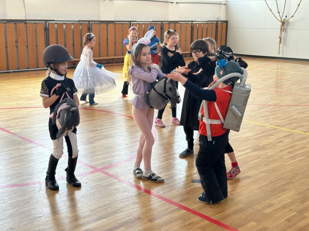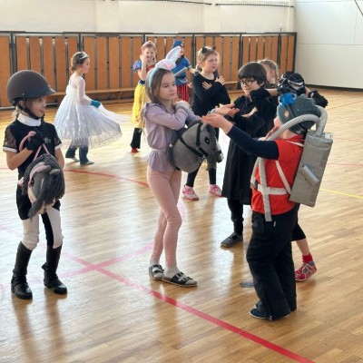 Ve středu 25.2. jsme si s dětmi užili karnevalovou zábavu v naší školní tělocvičně. Pestrými maskami se to tu jen hemžilo - od Sněhurky, přes kočičku, Harryho Pottera, Elzu až po kosmonauta a spoustu dalších masek. Společný čas jsme vyplnili karnevalovým tancem a tradičními karnevalovými hrami - podlézání tyče, tanec dvojic s balónky aj. Děti pak uvítaly zejména velkorysý prostor, který jim umožňoval dostatek pohybu a "blbnutí".