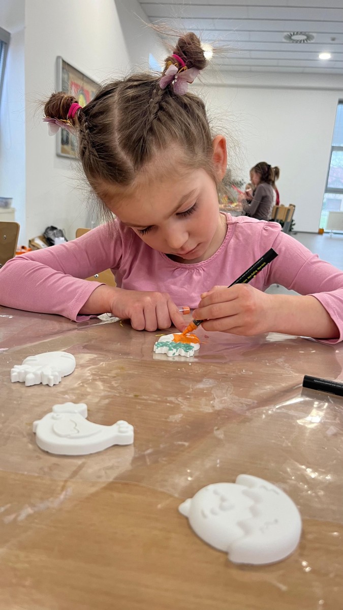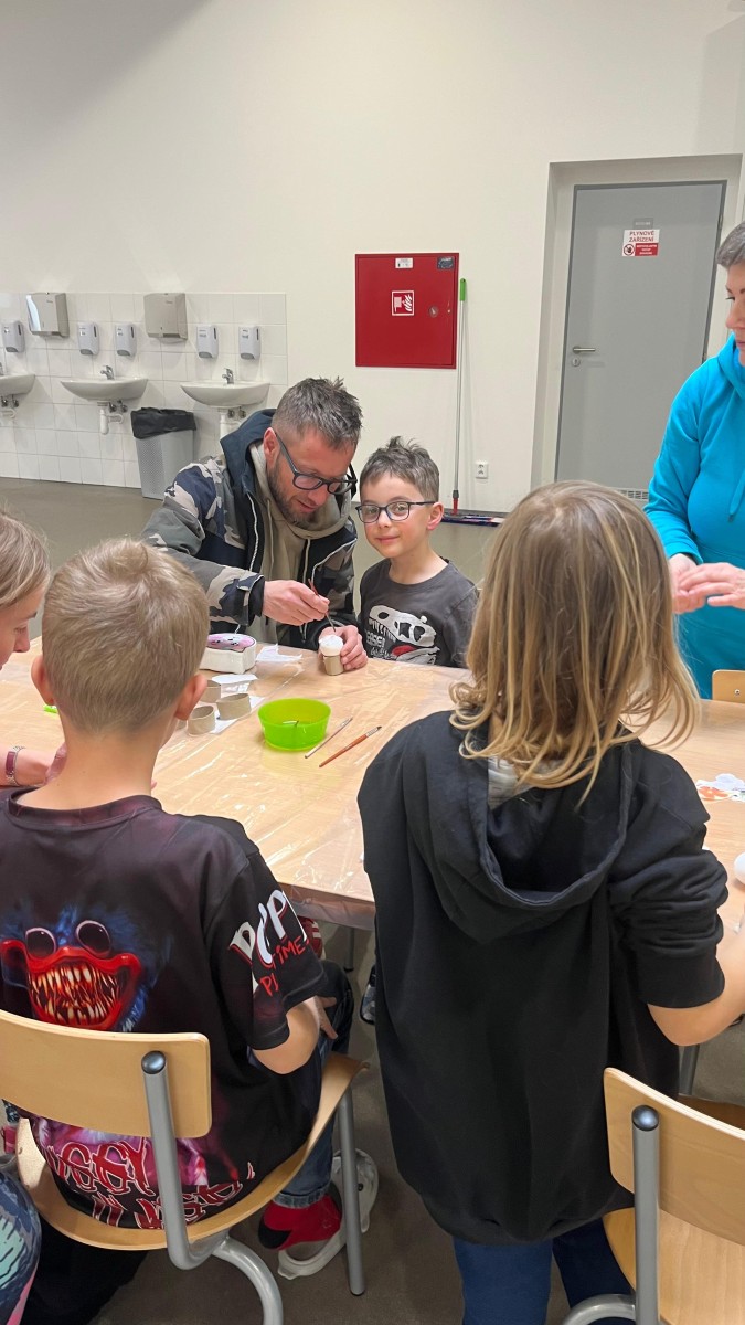 Ve čtvrtek 26.3. se ve školní jídelně, tak jako každý rok, konaly Jarní dílny ŠD. Počasí jaru příliš nenasvědčovalo, ale chuť ke tvoření byla velká. Děti si spolu s rodiči či prarodiči mohly vyrobit drobné jarní dekorace, které si pak s sebou odnesly, aby jim doma dělaly radost. Jednalo se například o zdobené velikonoční vejce, drátkovou kytku v květináči, papírovou slepici, zdobený perníček, barvený velikonoční odlitek, či kytka z větviček.