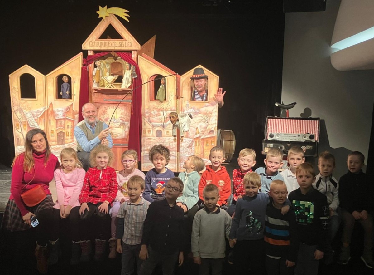 Čekání na Vánoce je pro děti velmi dlouhé, plné napětí a očekávání. V 1.M si jej krátíme čtením příběhů, zpíváme koledy a v pondělí 15. prosince jsme se vydali také do Divadla hudby. Oblíbené vánoční loutkové představení Zpátky do Betléma Teátru Pavla Šmída a kejklíře Vojty Vrtka vtipně vypráví starý příběh o narození Ježíška.