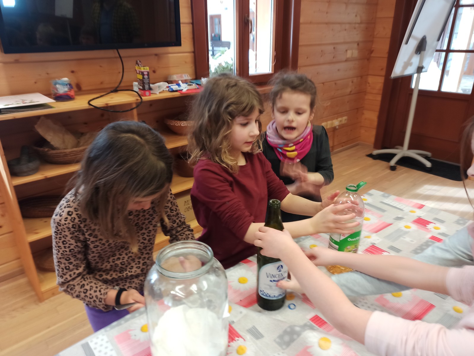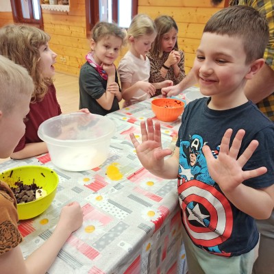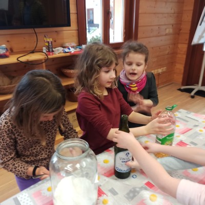 Letošní monte prvňáčci už stačili zažít týdenní pobyt v přírodě. Hned v pondělí po jarních prázdninách 6.3. odjeli od školy autobusem do ekologického centra ve Švagrově. Čekal je týden plný zajímavých aktivit z Říše královny Kastimonie, která se snaží naši planetu udržet "zdravou". Jeden den navštívily děti Alchimistu, se kterým dělaly různé pokusy a každý si vyrobil mýdlo a šampon na vlasy. Druhý den to byla návštěva u kuchaře. Celou chatu provonělo čokoládové brownies s červenou řepou. Mňam. Další návštěva u krejčího dětem ukázala, že i ze staršího oblečení můžeme vytvořit skvělé kousky a není potřeba vše kupovat stále nové. Každý z dětí si vyrobil svoji plátěnou tašku a do ní si schoval všechny vyrobené dárečky a poklady.