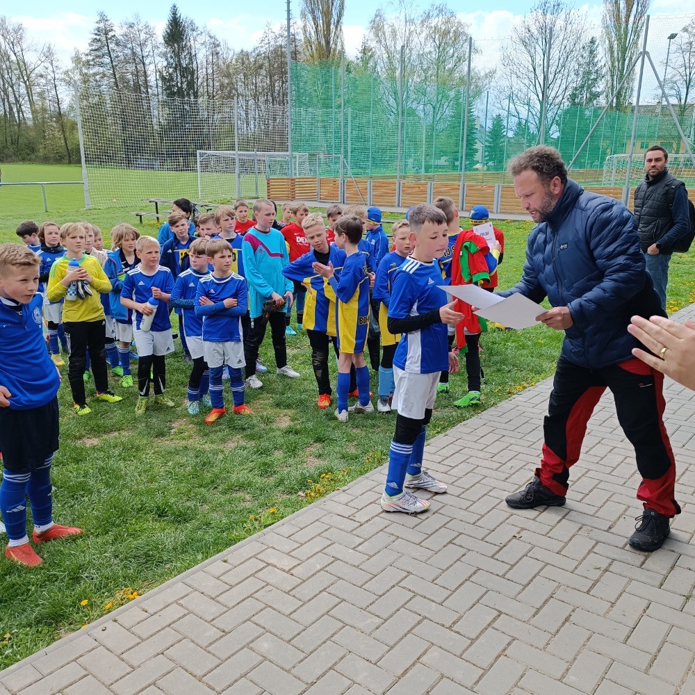 Ve čtvrtek 27.4. jsme hráli okrskové kolo kategorie A v Grygově. Nejdříve jsme porazili Scio školu 9:1 a potom domácí Grygov 4:2. V semifinále jsme narazili na Hněvotín a i když jsme měli více ze hry, neproměněné šance nás připravily o výhru a zápas skončil 2:2. Následoval penaltový rozstřel, ve které jsme soupeři podlehli. Hráli jsme tedy o třetí místo opět s domácím Grygovem a po výsledku 1:1 následovaly zase penalty a opět neúspěšně. Chlapci bojovali a poznali tedy i určitou krutost sportu, když skončili čtvrtí aniž by prohráli jediné utkání v normální hrací době. Za chvíli se však oklepali a určitě převládají kladné vzpomínky na dobře odehraný turnaj.