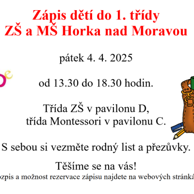 ZŠ a MŠ Horka nad Moravou, p.o., přijme učitele/ku II.stupně základní školy s aprobací český jazyk a výtvarná výchova na zástup za nemoc do konce školního roku 2024/2025. Úvazek: 1,00, nástup ihned. P...