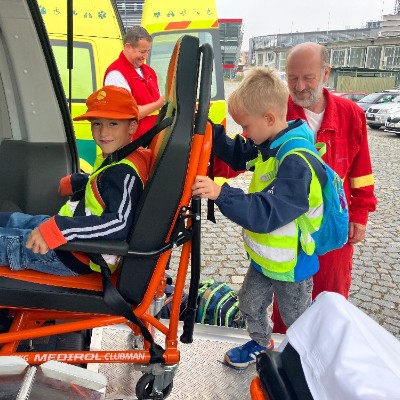 V rámci projektového dne se 2.M byla zblízka podívat, jak to chodí na záchrance ve fakultní nemocnici. Děti si prohlédly kromě běžné sanitky také dětskou, vybavenou hračkami a plyšáky, na vlastní kůži...