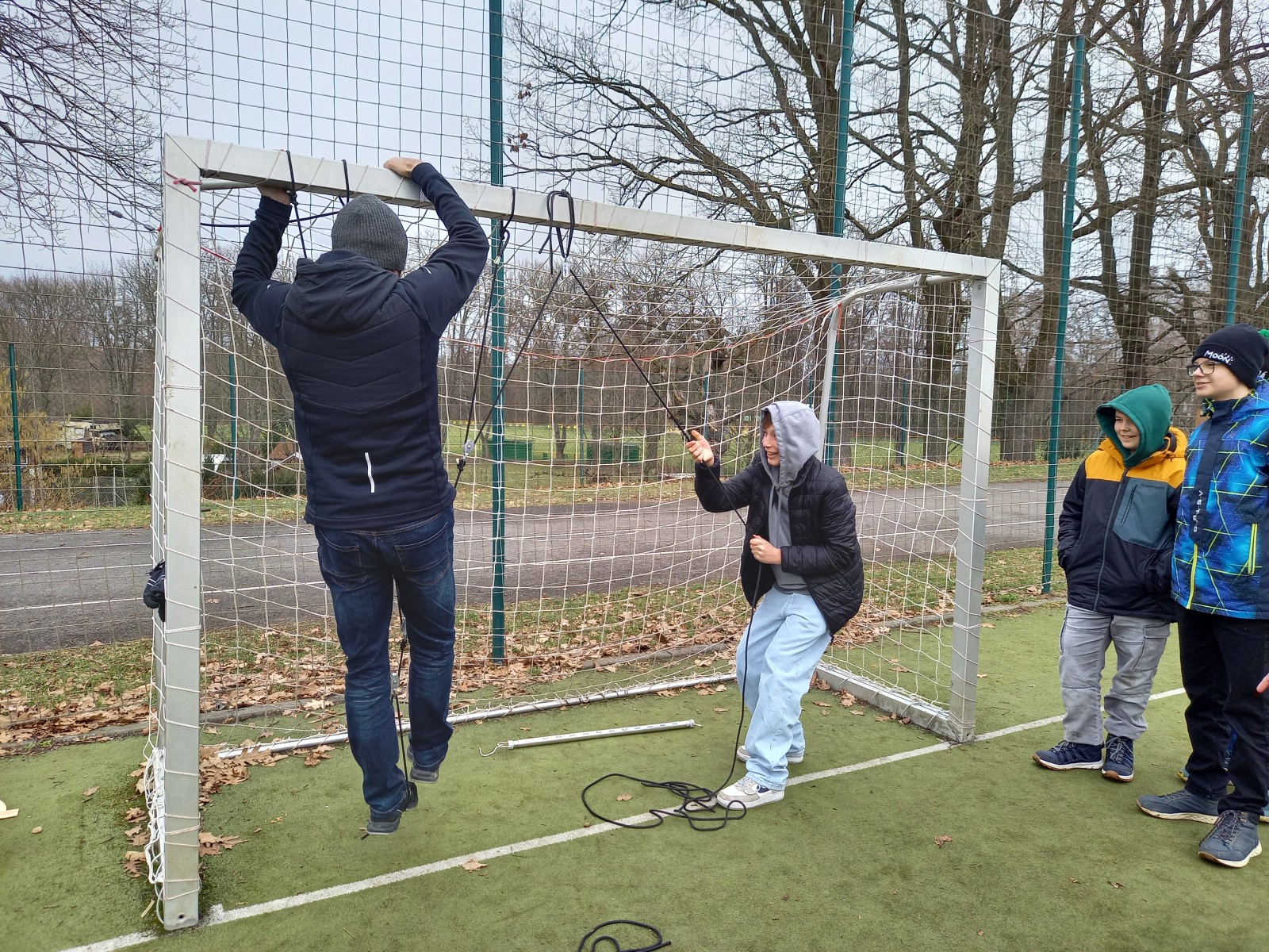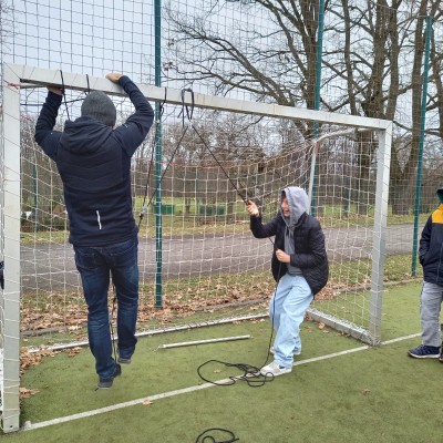 V posledních hodinách fyziky jsme se zabývali kladkami a tím, jak kladky fungují. Teorie, nákresy, výpočty... A pak přišla praxe. Vyšli jsme ven na školní hřiště a připravili si několik situací, jak lze kladky využít. Vyzkoušeli jsme si pevnou kladku, o které jsme věděli, že nám působící síly nezmění. Ověřili jsme si volnou kladku a získali důkaz toho, jak se síly rozloží a tím jakoby změní hmotnost zvedaného tělesa. Na konci hodiny přišla ještě zajímavá výzva. Sestrojit tzv. Archimédův kladkostroj – pomocí třech volných kladek a jedné pevné jsme lehce zvládli zvednout ze země i svého spolužáka. Dokonce i na pana učitele náš kladkostroj fungoval!