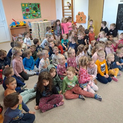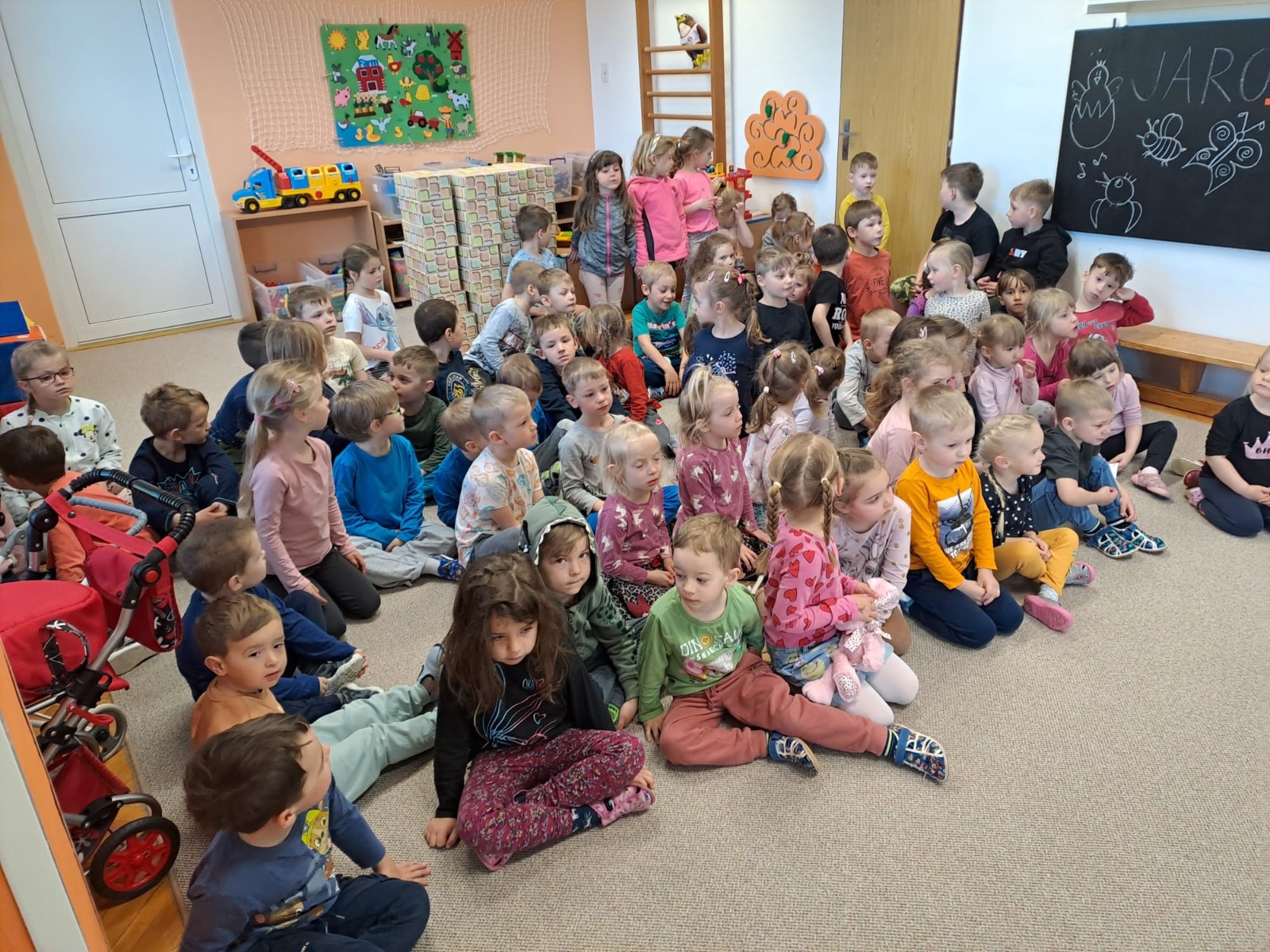 Přestože se v obecenstvu sešly děti všech oddělení naráz, vytvořila se krásná a pohodová atmosféra a děti si i společně zazpívaly.