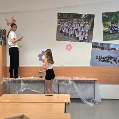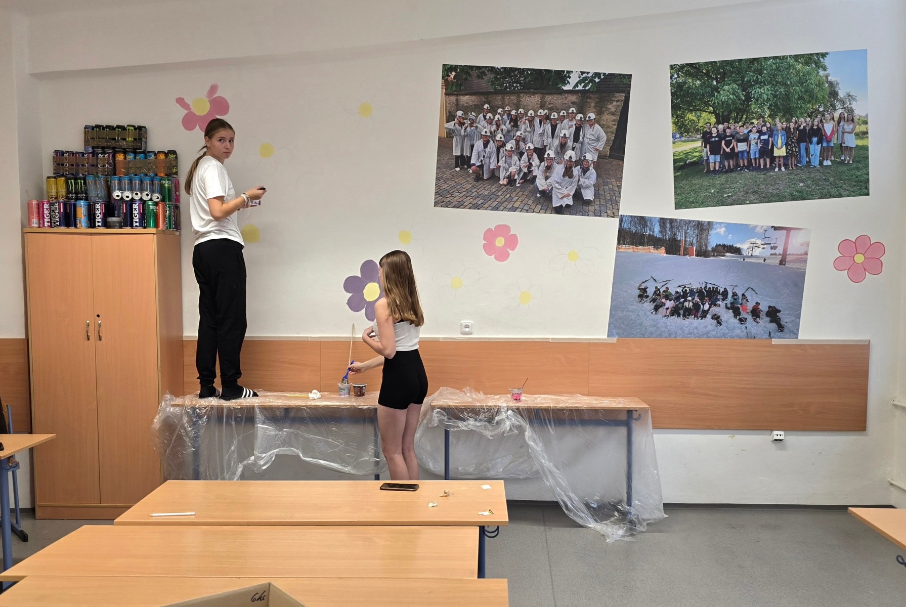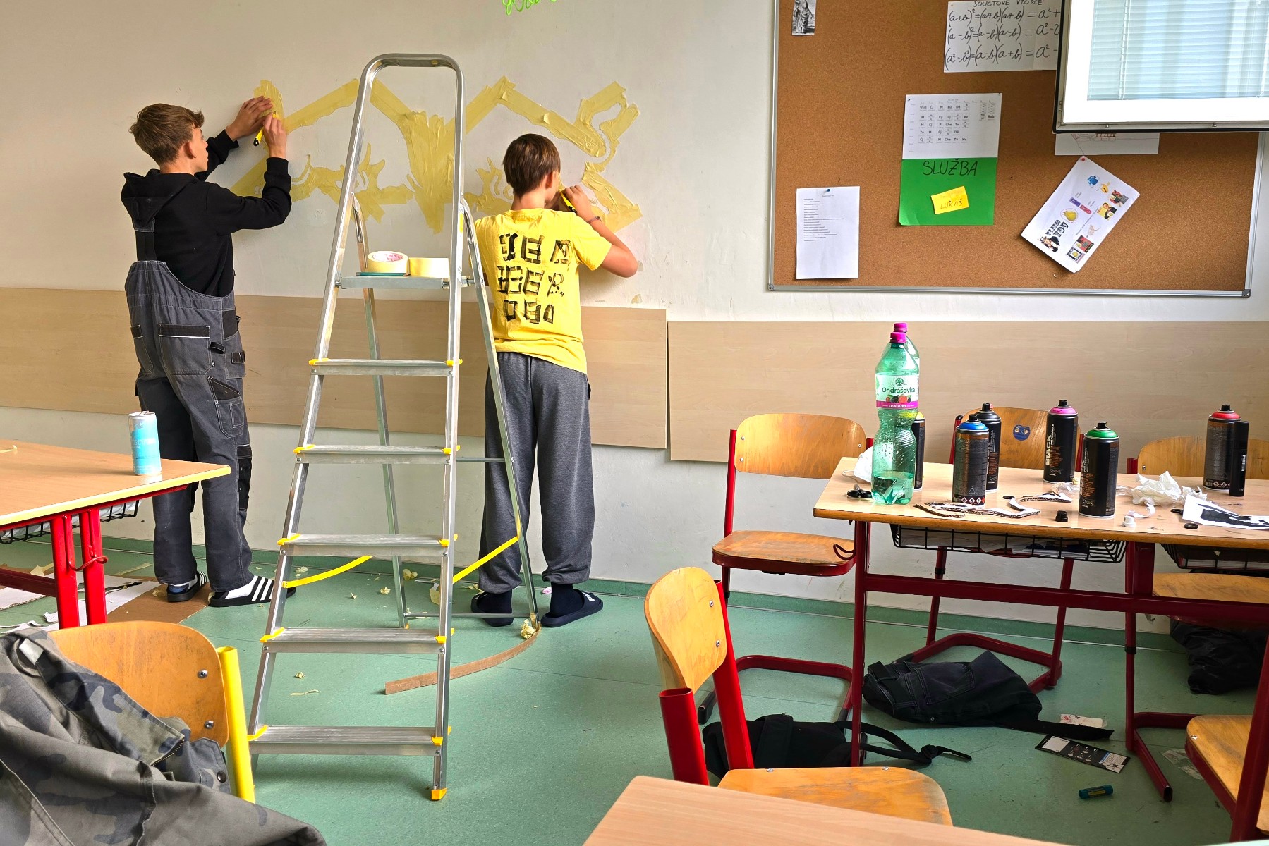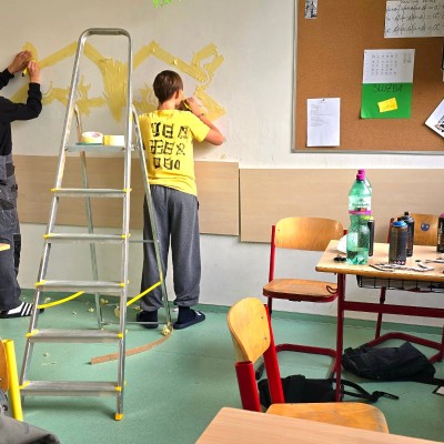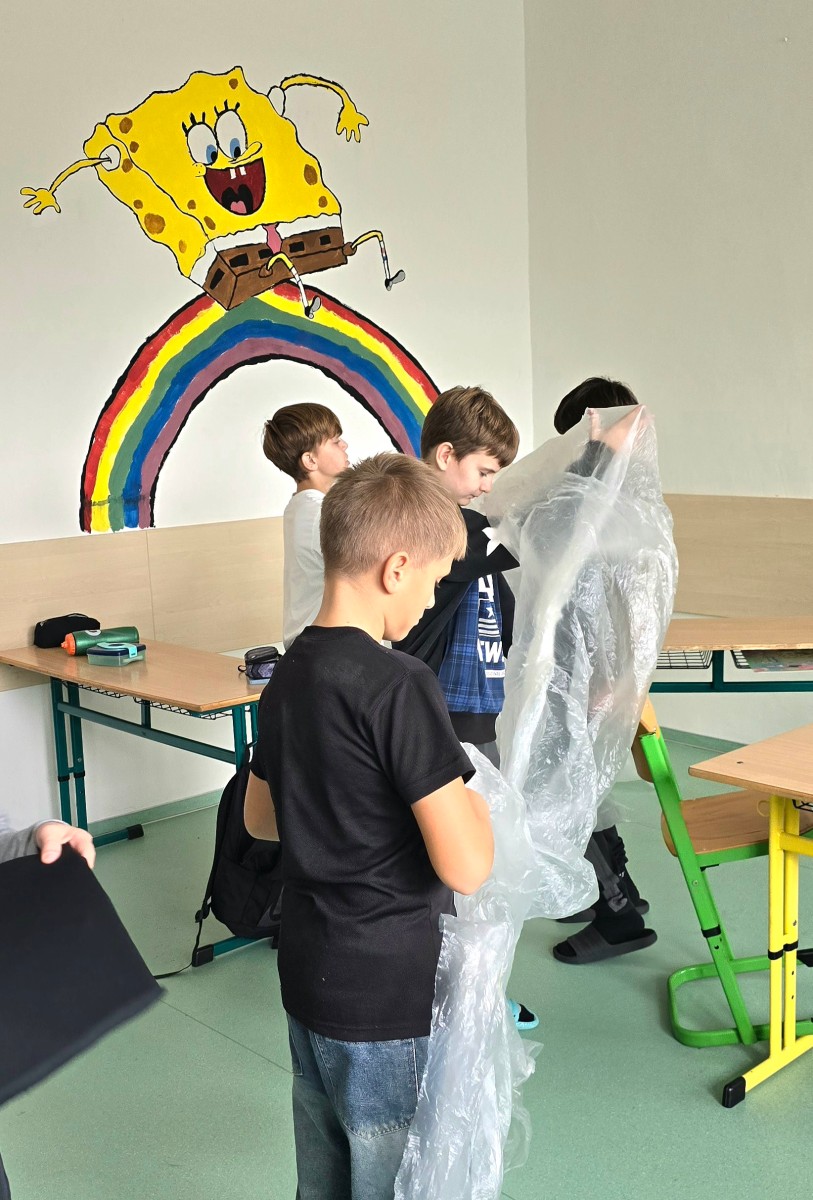 V den D se pak žáci vrhli na realizaci svých projektů. Malovalo se na zdi ve třídách, opravovaly se čáry na běžecké trati v areálu, vyráběly se pomůcky a výzdoba do tříd, šily podsedáky na židle, vyráběla se relaxační pohovka na chodbu a další projekty.