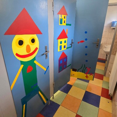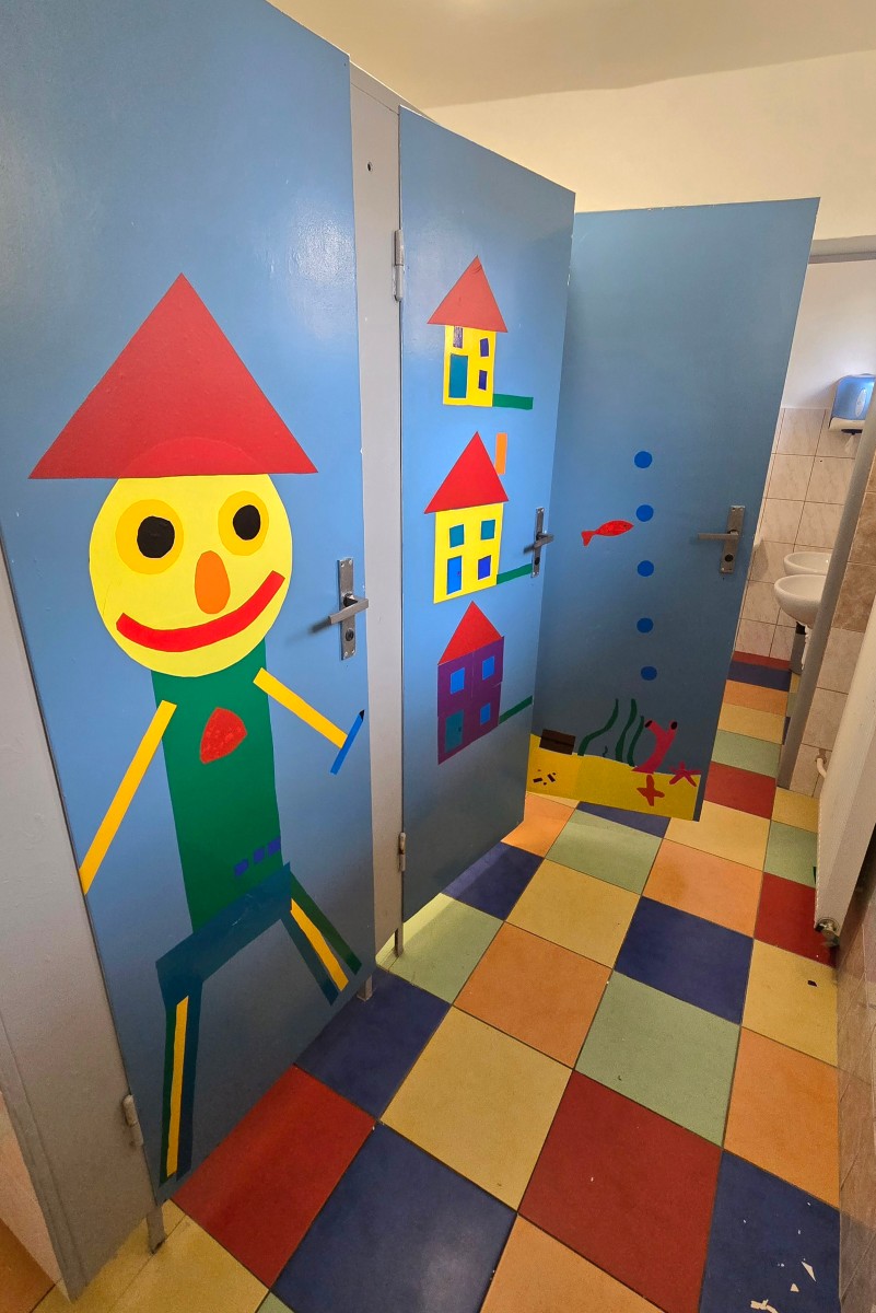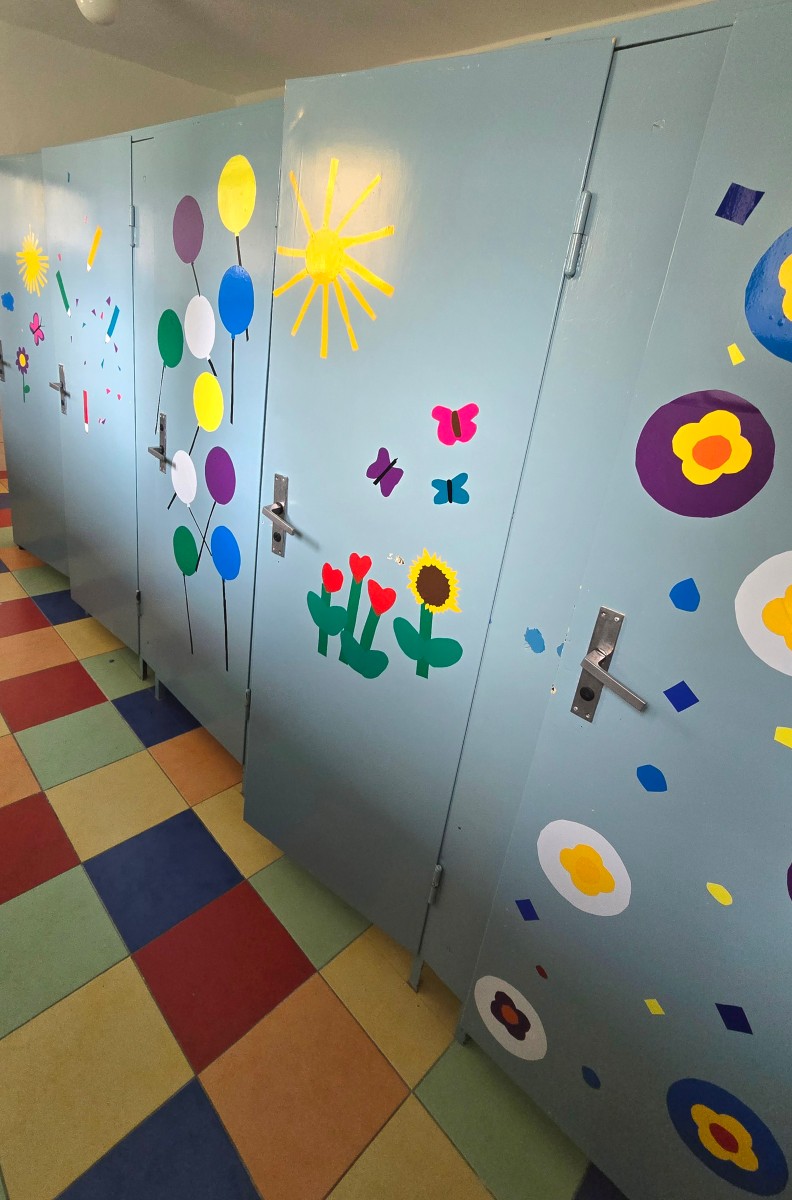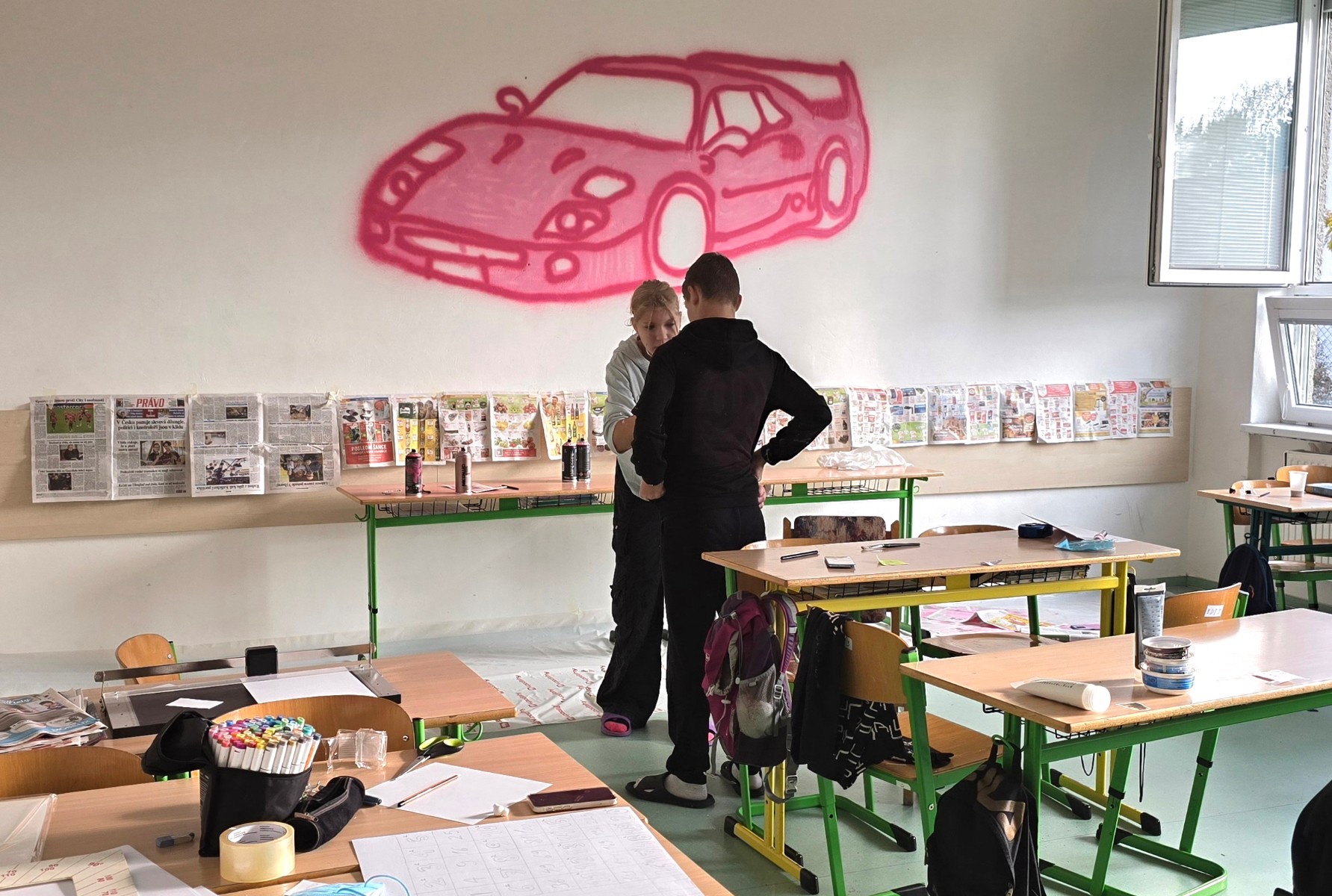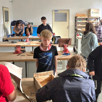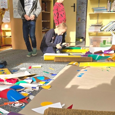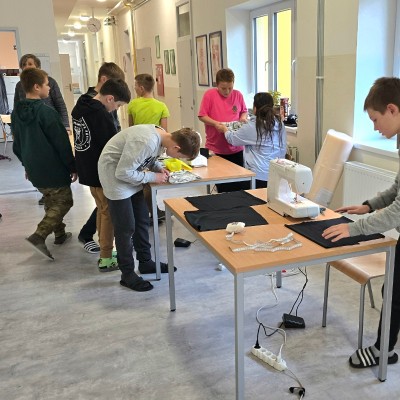 V den D se pak žáci vrhli na realizaci svých projektů. Malovalo se na zdi ve třídách, opravovaly se čáry na běžecké trati v areálu, vyráběly se pomůcky a výzdoba do tříd, šily podsedáky na židle, vyráběla se relaxační pohovka na chodbu a další projekty.