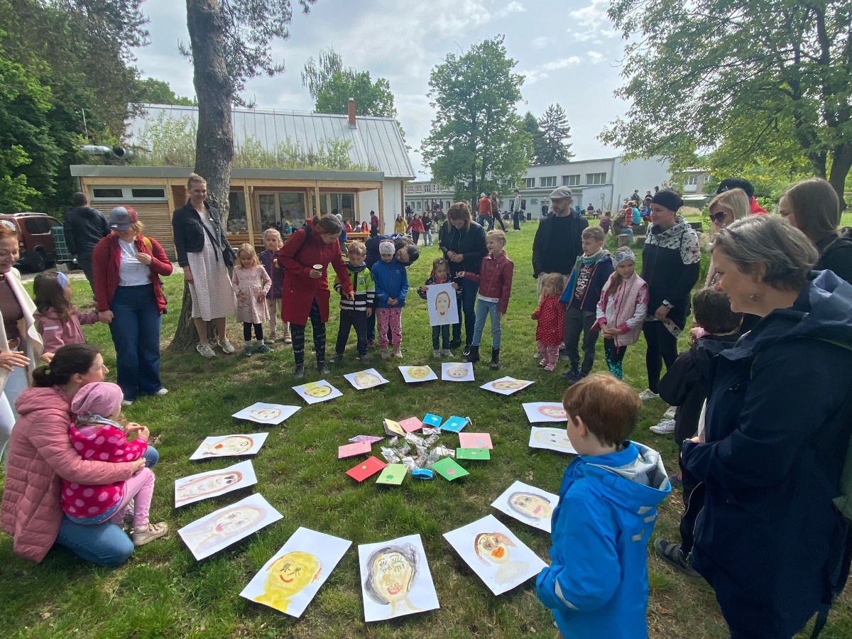 Svátek matek letos oslavily děti z 1.M spolu se svými maminkami v rámci akce Férová snídaně. Byl to druhý květnový víkend. Využili jsme toho, že maminky přišly. A tak jsme po vystoupení Sborečku pozvali maminky z 1.M do "borového hájku" na konci školní zahrady. Úkol maminek byl jasný: najít mezi portréty ten svůj. Bylo zajímavé sledovat, jak se maminky podle obrázků svých dětí poznávají. Nakonec jim děti popřály, předaly dáreček vyrobený na škole v přírodě a přáníčko. Ve tvářích maminek se rozléval šťastný úsměv a možná i slzička dojetí