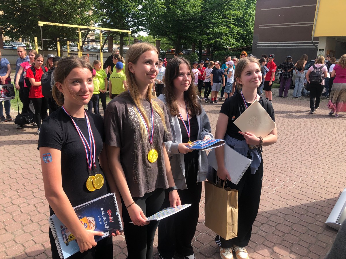 Ve středu 14.5.2025 se dvě družstva mladých zdravotníků z volitelného předmětu Přírodopisné praktikum zúčastnila okresního kola soutěže základních škol v první pomoci pořádané Českým červeným křížem, která se konala v Olomouci. Této soutěže se zúčastnilo 19 družstev z okresů Olomouc a Přerov. Soutěž zahrnovala 5 stanovišť (např. první pomoc, obvazová technika, transport raněného atd.). Každé družstvo mělo 5 členů. Obě družstva z naší školy prokázaly své znalosti a skončily na krásném 1. a 7. místě. Úspěšnější družstvo postoupilo do oblastního kola.
