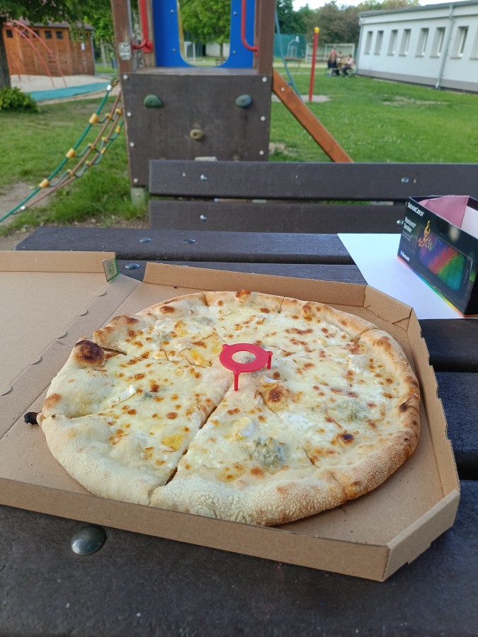 Program byl pestrý – po příchodu si holky i kluci užili společnou vybíjenou a fotbal, následovala hromadná objednávka pizz a kebabů a u večeře jsme se podívali na fotky z našich společných akcí za uplynulý rok. Nechyběla schovka ve tmě na zahradě i noční bojovka přímo ve škole.