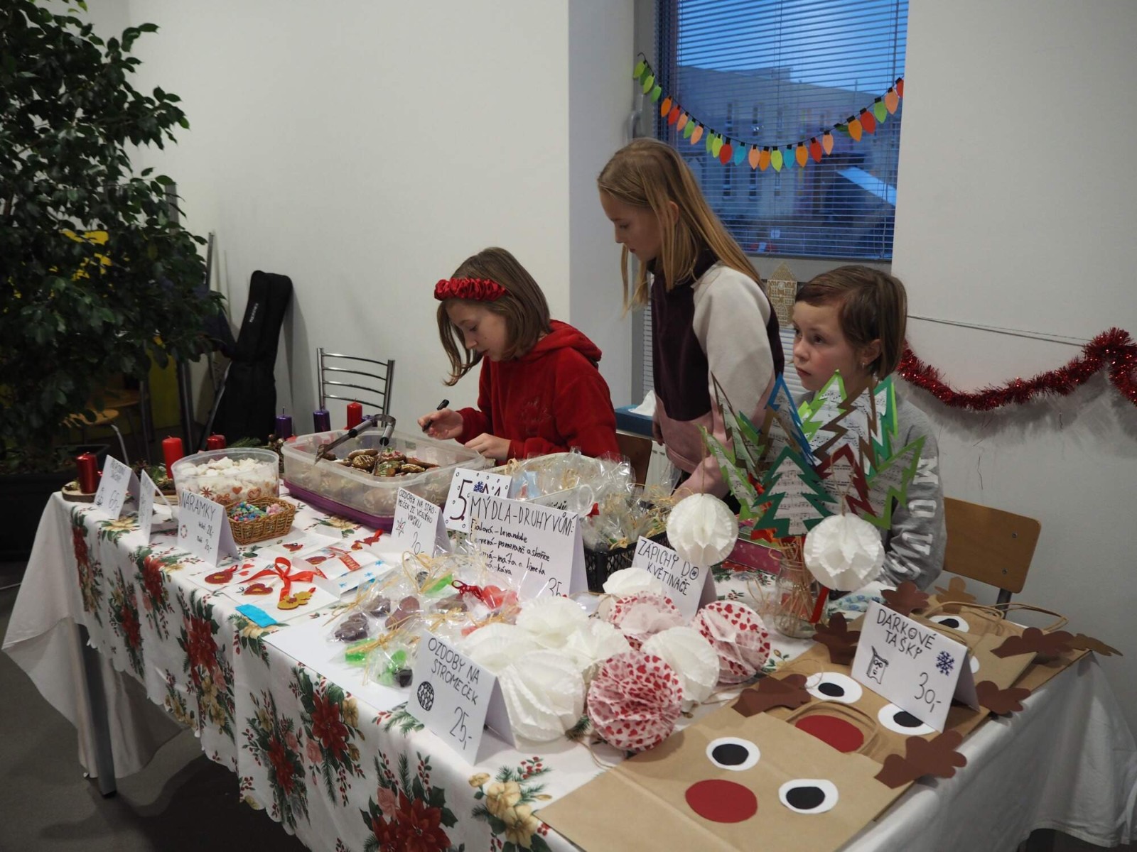 Děti zde pak u „stánků“ mohly prodávat své výrobky, potkat se s rodiči a sourozenci spolužáků nebo třeba vytvořit originální fotky ve fotokoutku.