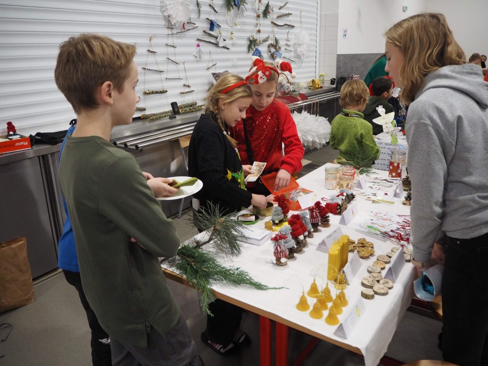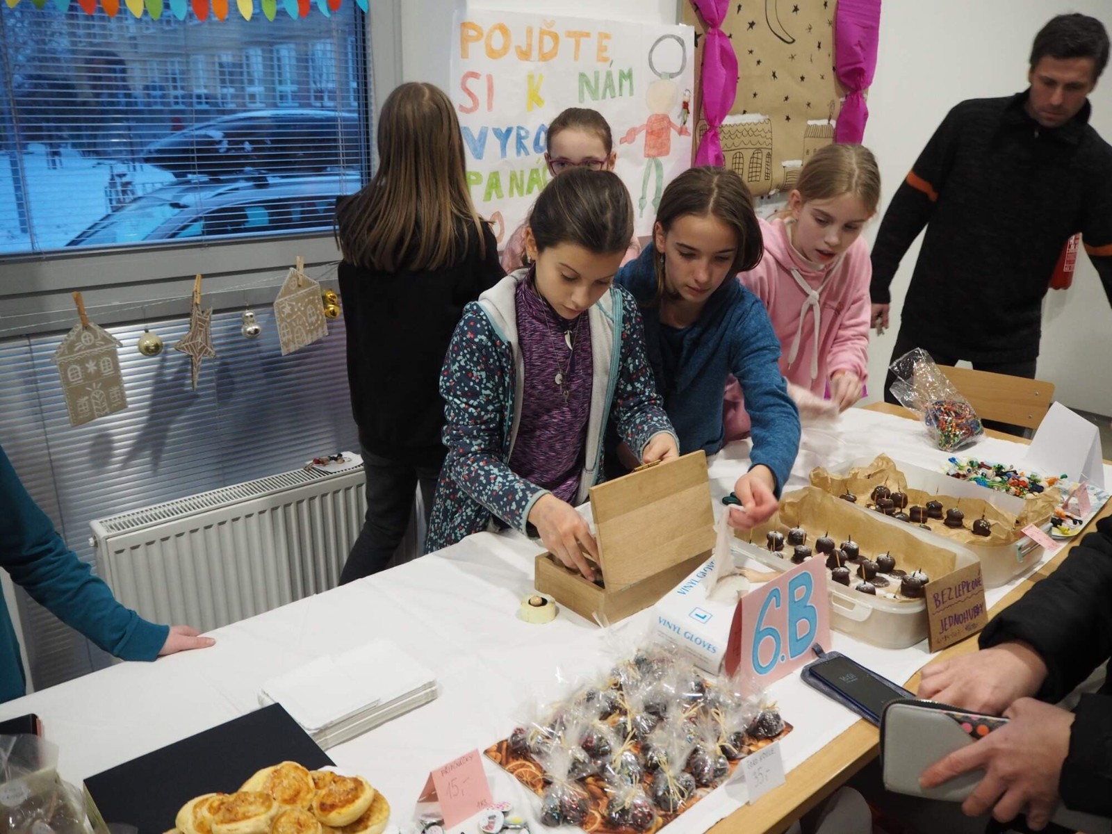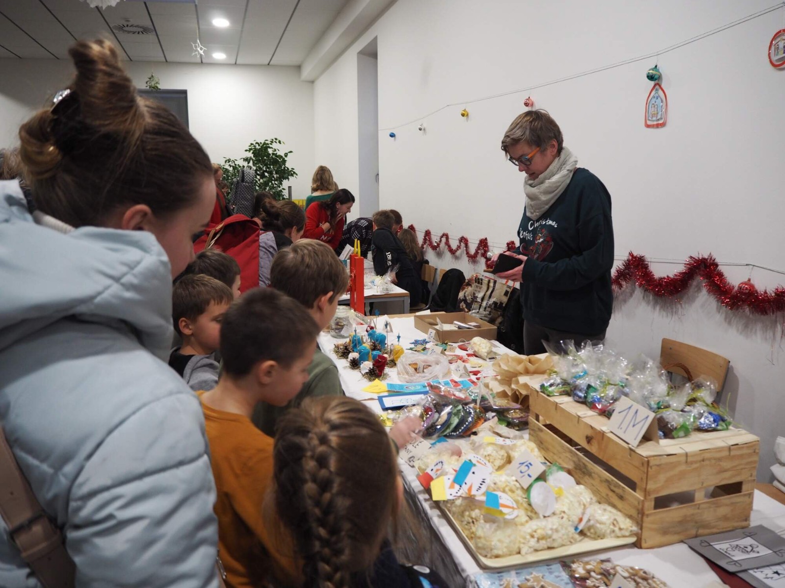 Bylo v plánu, že jarmark potrvá od 16 do 18 hodin – většina stánkařů však již po hodině měla téměř vyprodáno. Bylo příjemné vidět, jak žáci zvládají jak prodej samotný, tak i konverzaci se zákazníky. A ne vždy to bylo jen česky!