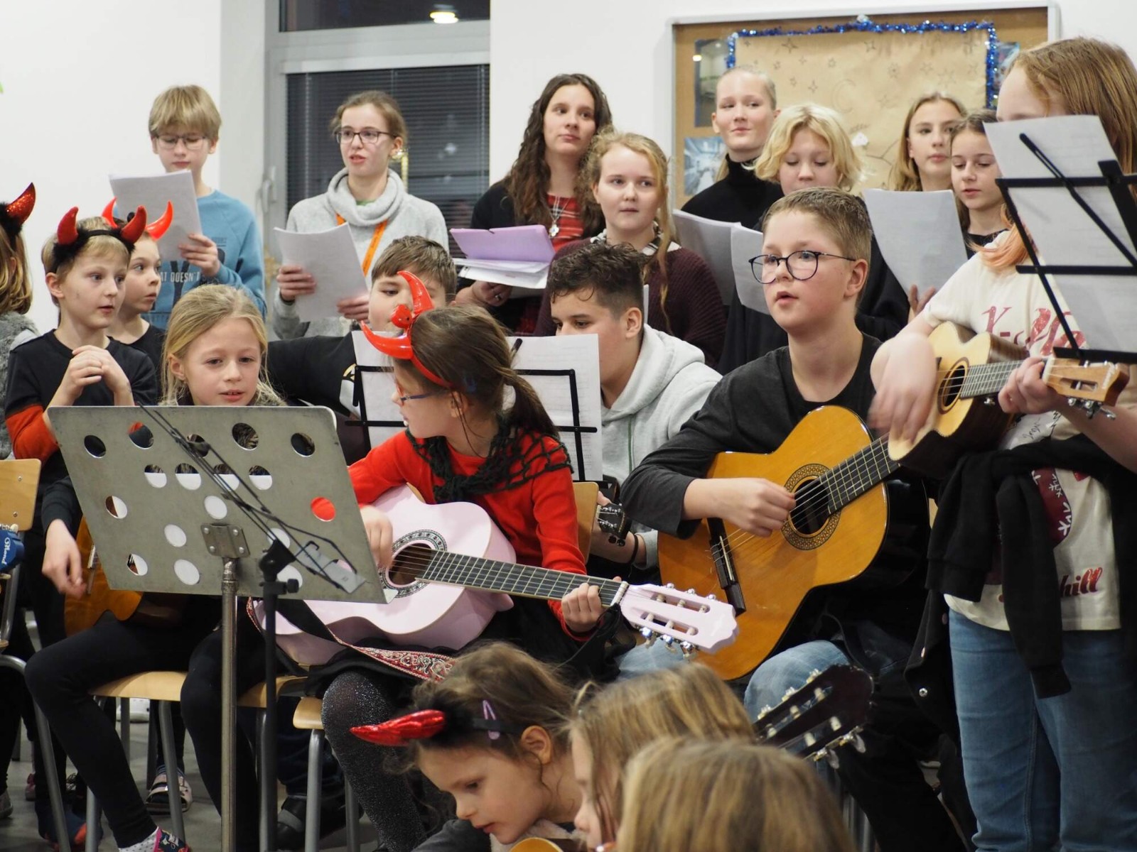 O zahájení se postaral nově založený sbor složený z mladších i starších žáků. V průběhu večera pak zpíval Jan Vepřek z deváté třídy. Představil jak tvorbu známých interpretů, tak svou vlastní.
