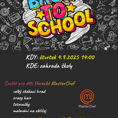 Milí žáci, vážení rodiče, přijďte s námi ve čtvrtek 4. září 2025 od 14,00 oslavit začátek školního roku 2025/2026. Sdružení rodičů připravilo program včetně soutěže Horecké MasterChef. Pravidla hry na...